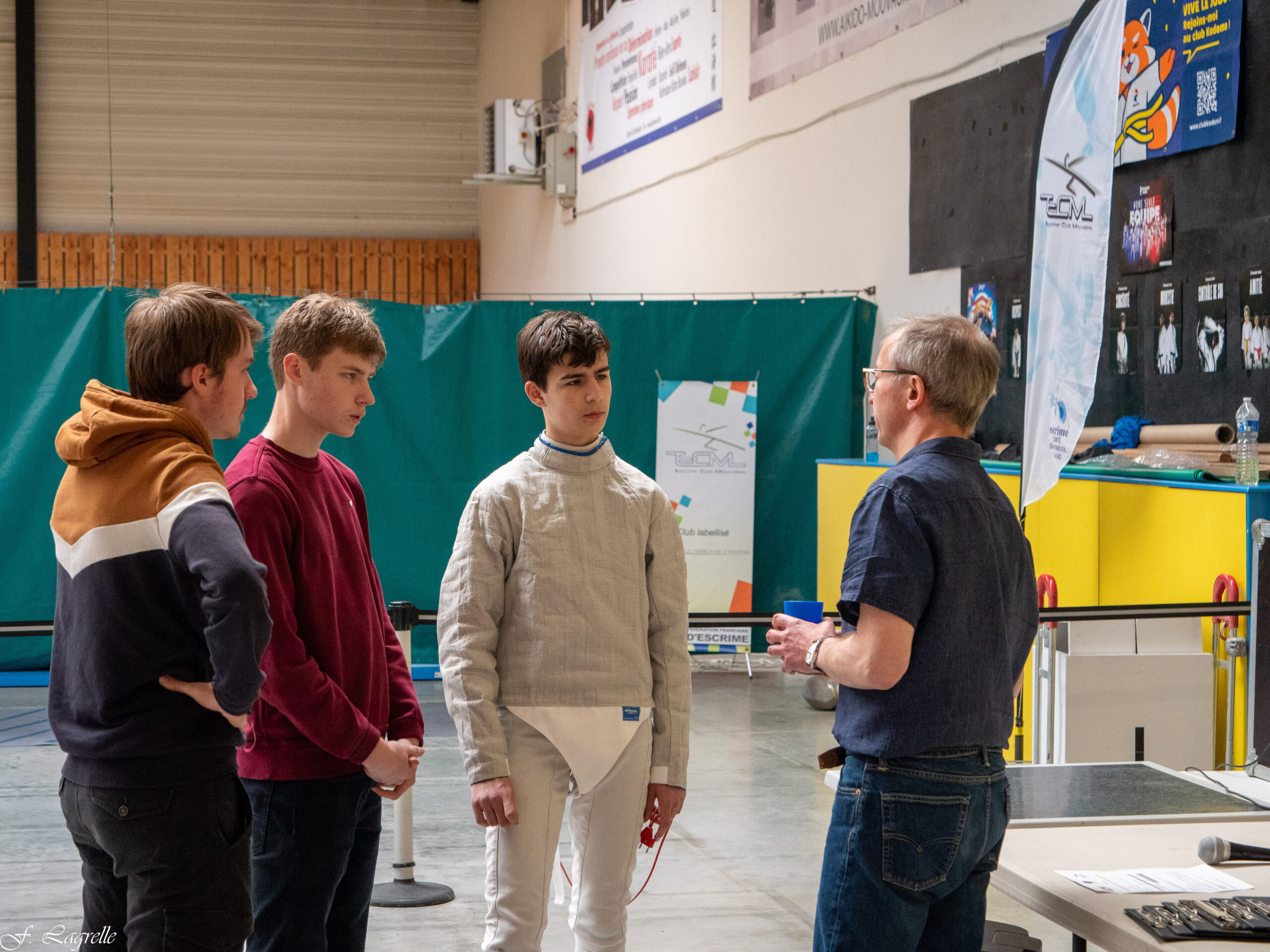 14 sabreurs et 4 sabreuses venus de Saint Quentin, Faches-Thumesnil, Roubaix, Wattrelos et Mouvaux, tiraient un tour de poule mixte, puis continuaient en tableaux hommes et dames.