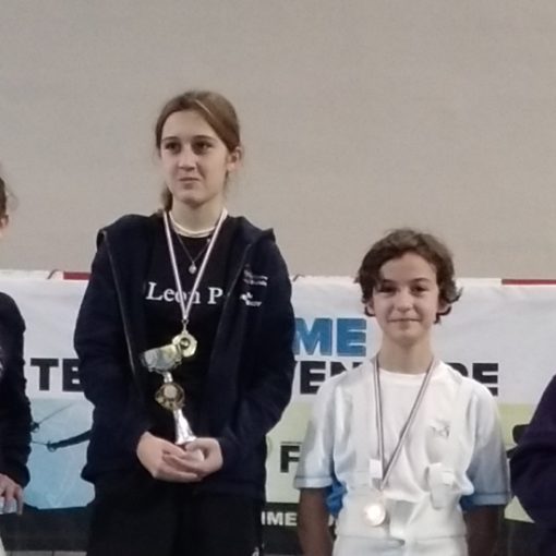 Enaëlle ouvrait le bal, samedi, par un bon tour de poule avec 5 victoires sur 6 matchs, qui la classait 26ème/125. Le tableau s’avérait plus laborieux… Passant le T128 non sans peine, elle perdait de peu en T64, éliminée 14/15 par Aileen SUBE VIEILLE de Strasbourg, à l’issue d’un assaut décousu et perturbé par des problèmes matériels.