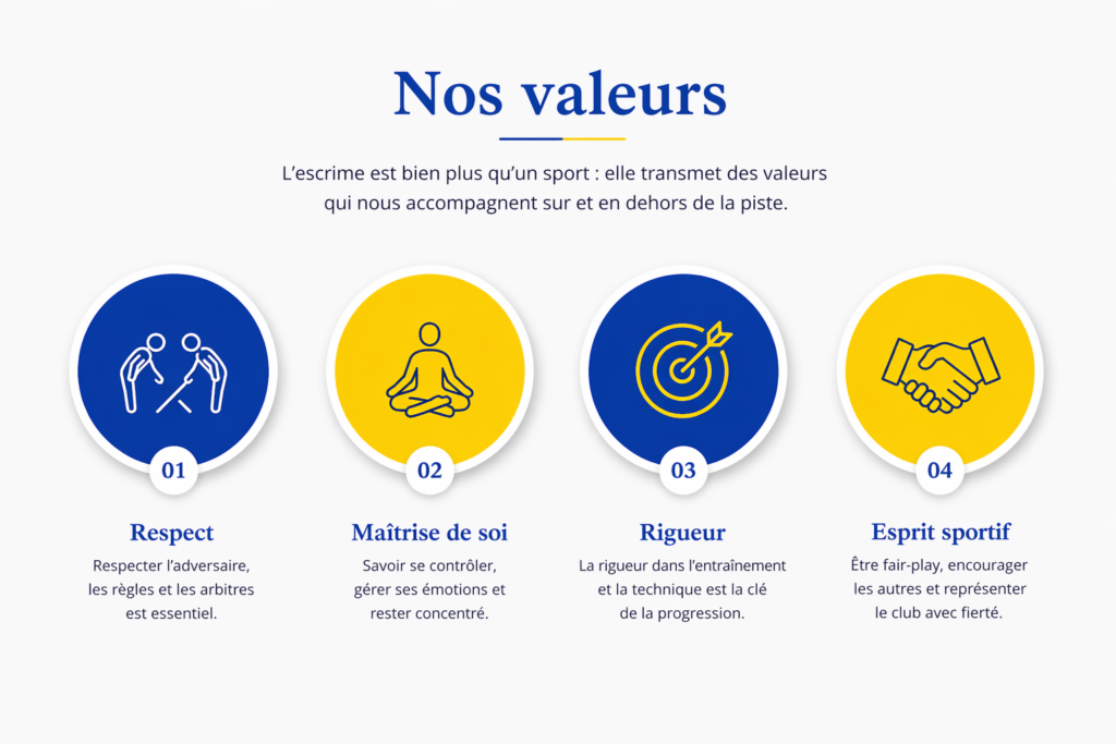 Il détient trois labels fédéraux : Fédération Française d’Escrime, Formateur et Performance.